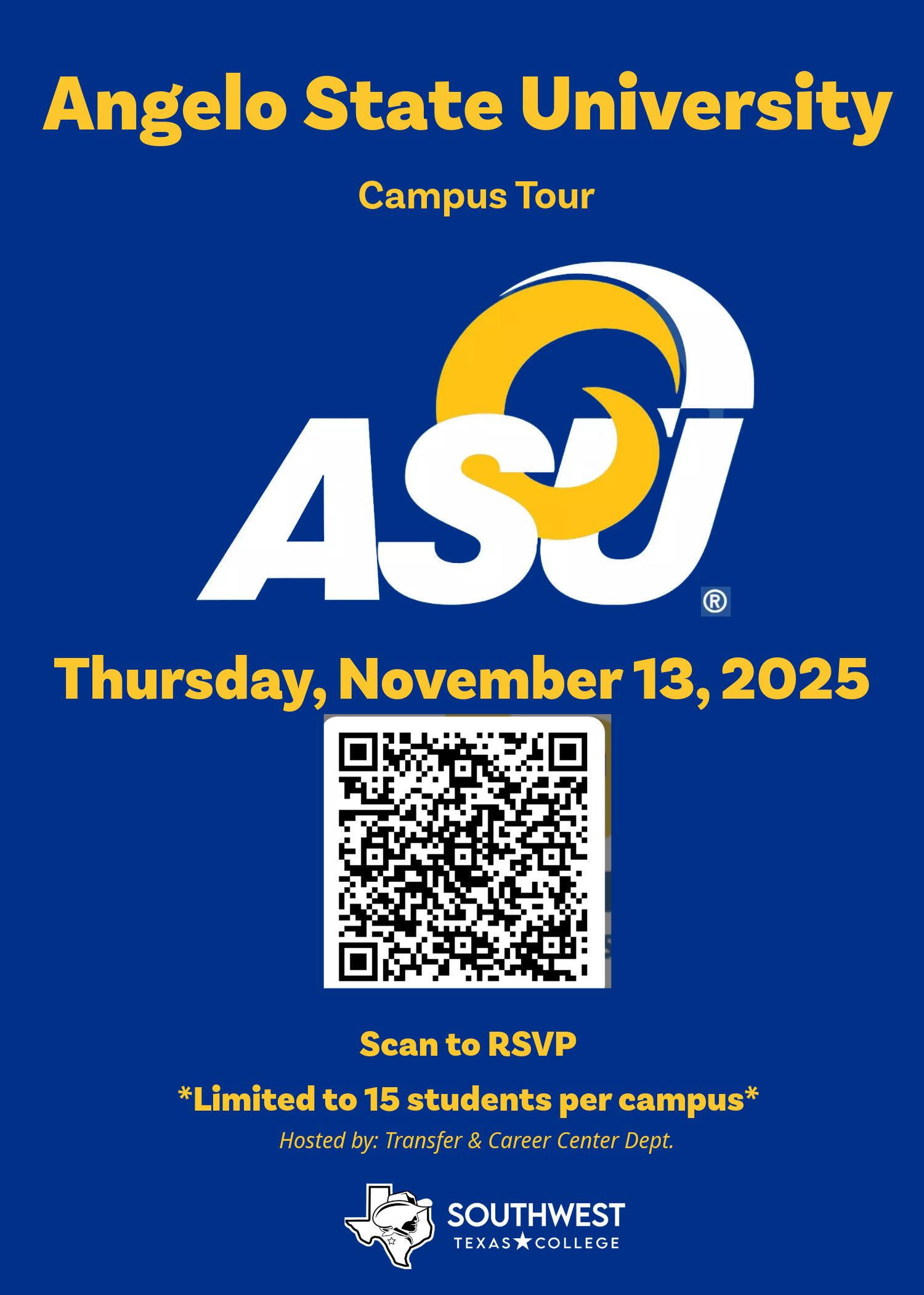 Nov. 13 | Campus Tour: Angelo State University | San Angelo, TX | Departure Time from Uvalde Campus: TBA
