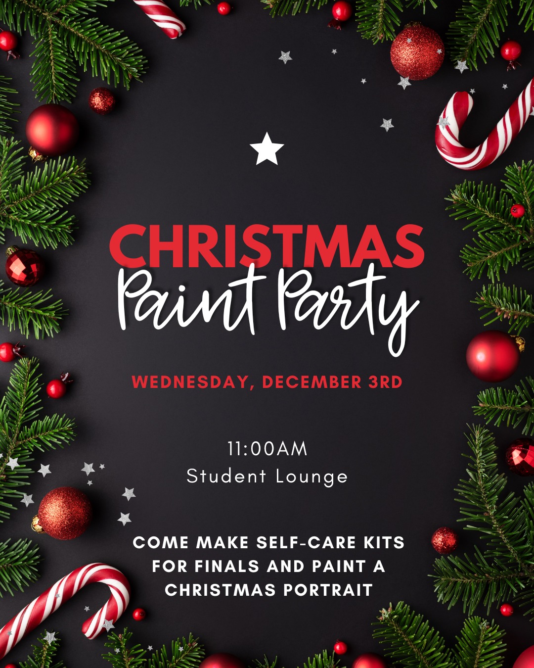 Dec. 3 | Christmas Paint Party & Self-care Kits | Matthews Student Center Student Lounge | 9:00 am